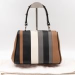 This is a pretty Prada Baiadera frame handbag. Very convenient shoulder bag in a brown leather, combined with silver-tone hardware. The neutral palette of the color bock exterior make the bag trendy. This fun bag features a frame top with push closures, inside a slim pocket. Great choice for daily use.