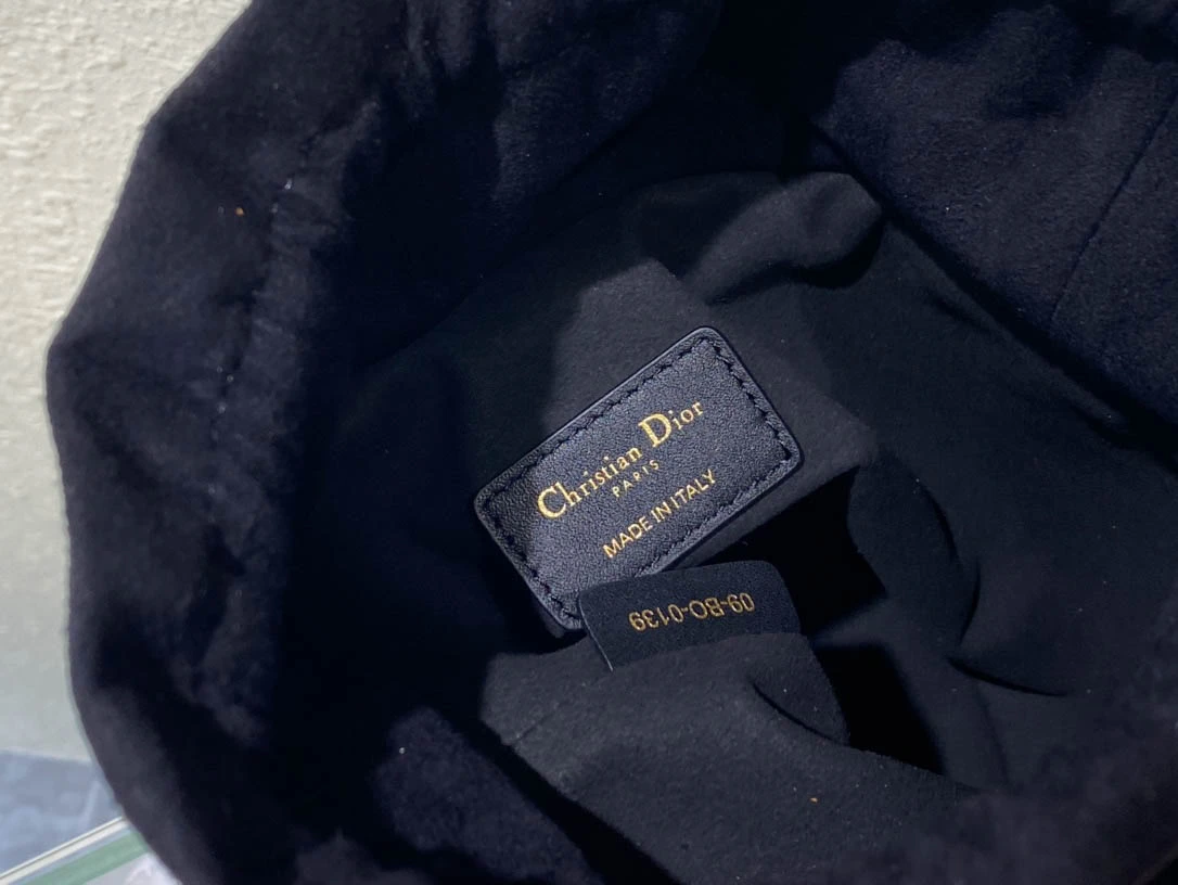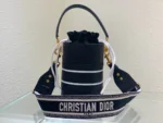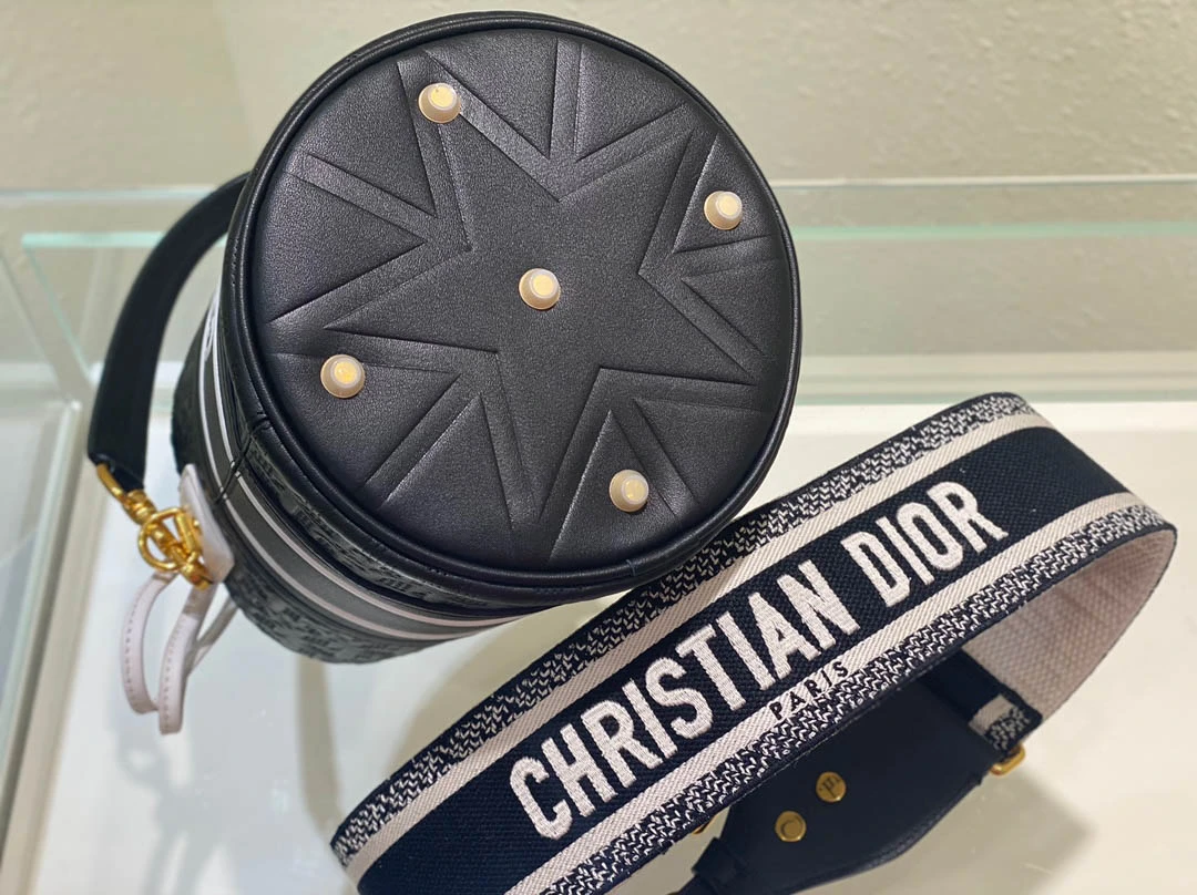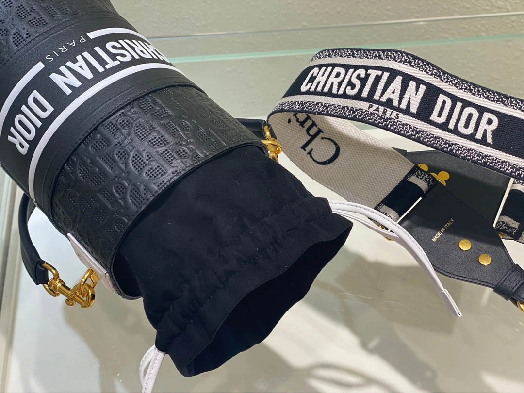 Black Cowhide Hollow Oblique Printed Bucket Bag Size 22cmx16cm