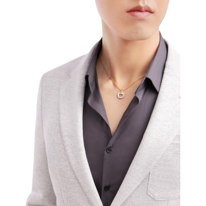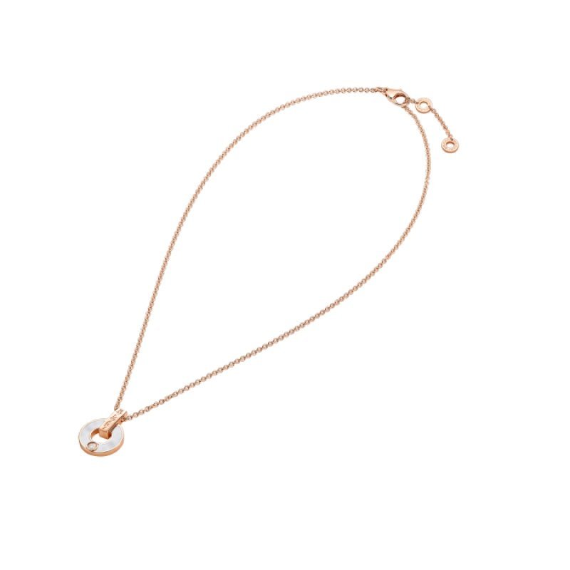 Bvlgari Bvlgari series hollow necklace, made of 18K rose gold, inlaid with mother-of-pearl and 1 brilliant-cut diamond.