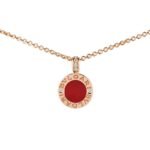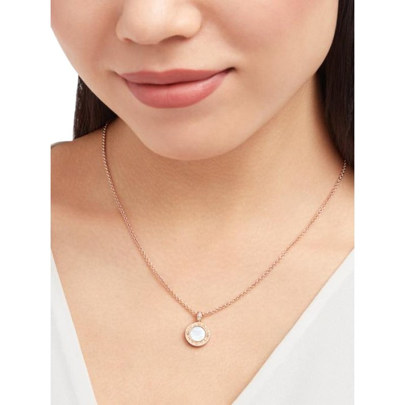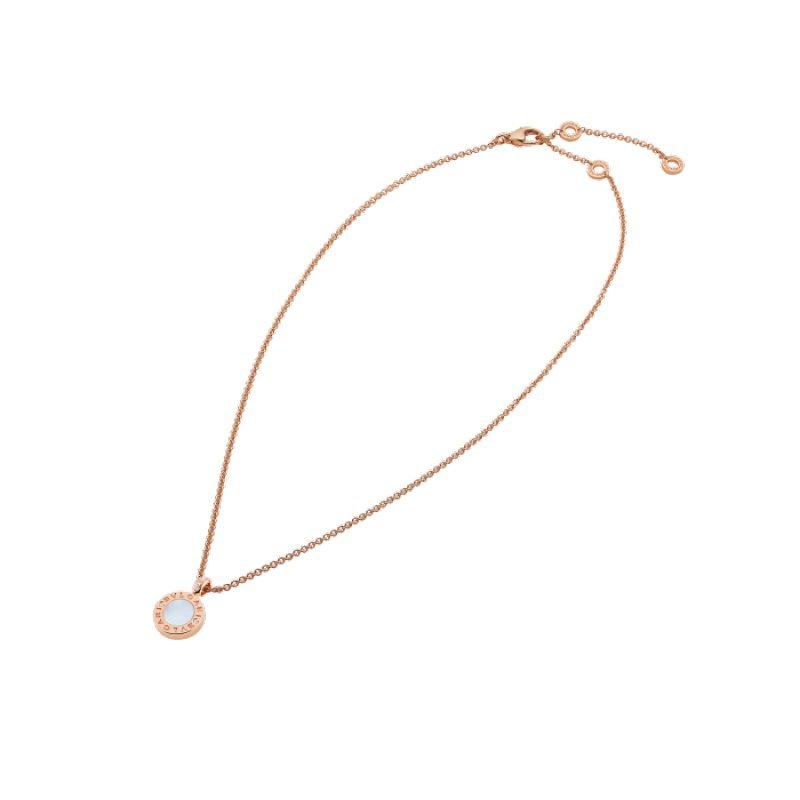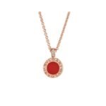 Both sides of the Bvlgari Bvlgari necklace are decorated with mother-of-pearl and carnelian roundels, two different elegant styles, with the same beauty. The Bvlgari Bvlgari series injects outstanding charm with cultural atmosphere and modern temperament into the brand’s Roman origins, representing the most distinctive fashion essence of Bvlgari. The double logo logo, which was used for the first time as a brand logo, was inspired by the arc inscription on ancient Roman coins and eventually became a classic element in jewelry design. It is still a timeless symbol of Bvlgari’s creativity today. The Bvlgari Bvlgari necklace is made of 18K rose gold, inlaid with carnelian and mother-of-pearl, and paired with pavé diamonds (0.12 carats).