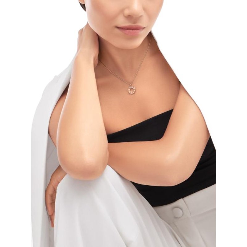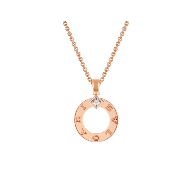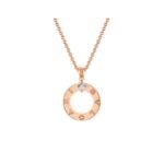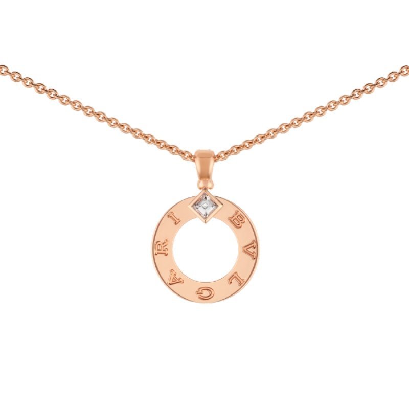 Inspired by Bvlgari’s Roman history, the Bvlgari Bvlgari necklace in 18K rose gold is a timeless blend of culture and modernity, embodying contemporary elegance. The collection’s logo is engraved on the round pendant, reminiscent of the arc-shaped inscriptions on ancient Roman coins, making it a distinctive design element, while a delicate square diamond adds a precious touch to the jewellery piece. This necklace is stylish and versatile, and can be mixed and matched at will.