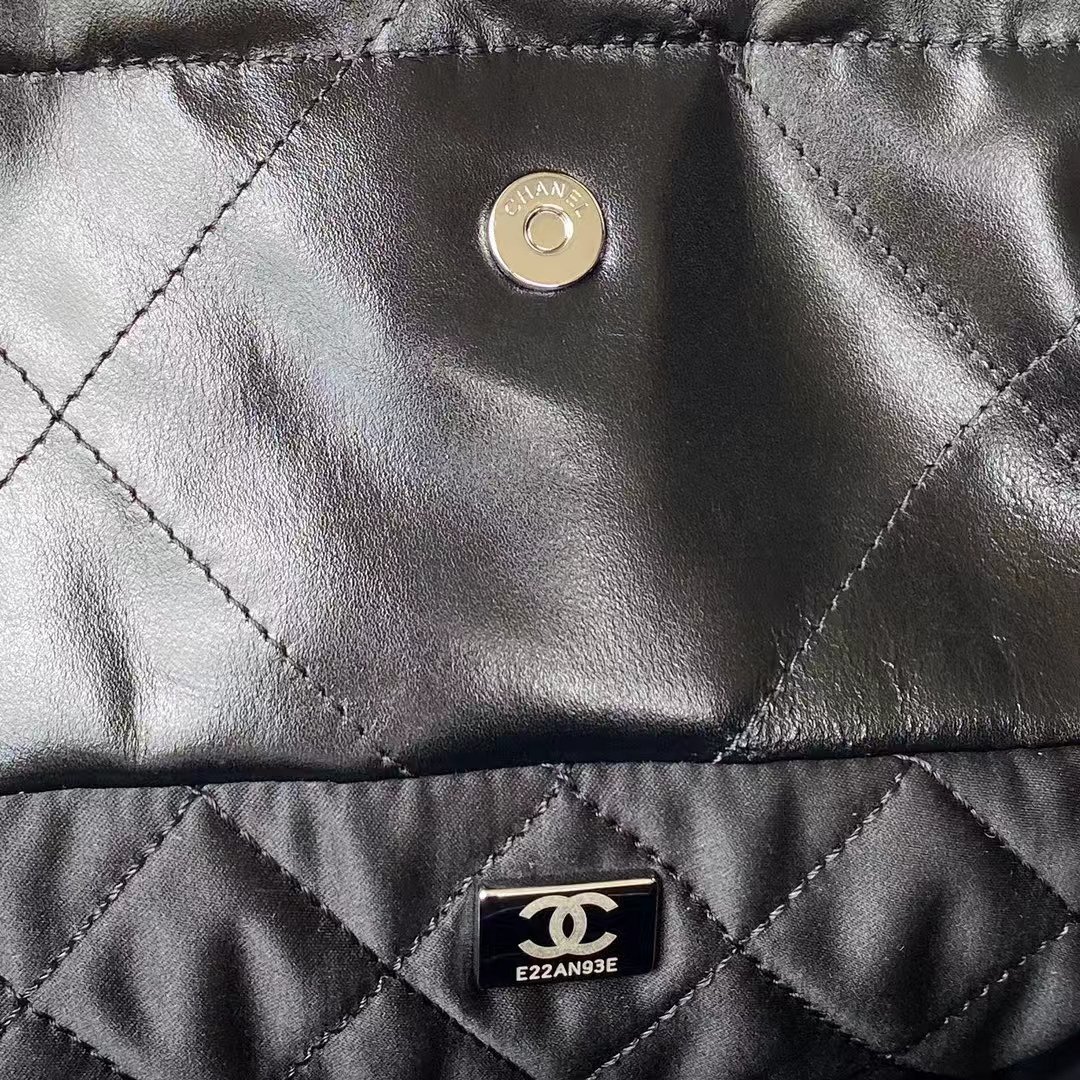 Chanel 22 AS3260 Small Bag Black and Silver Shiny Calfskin Silver Hardware
