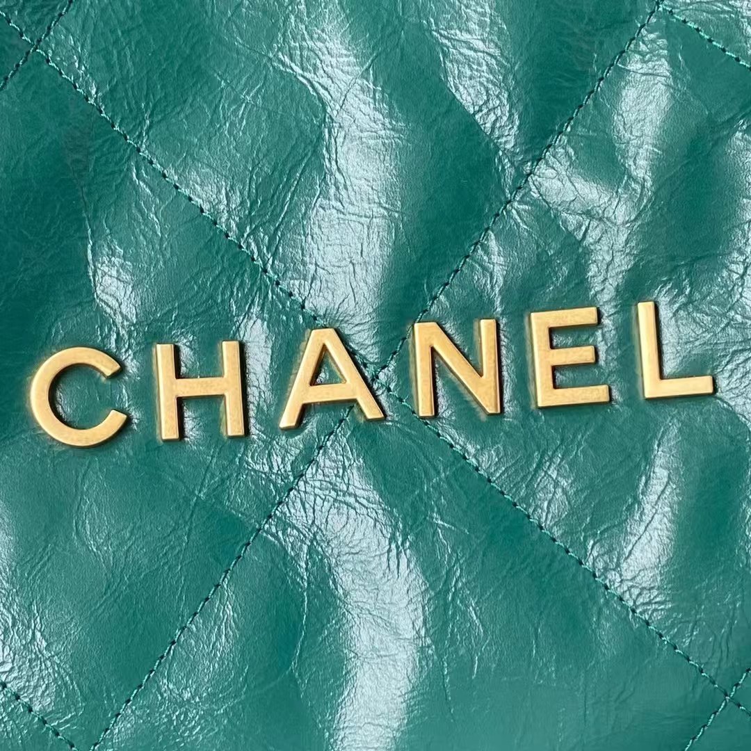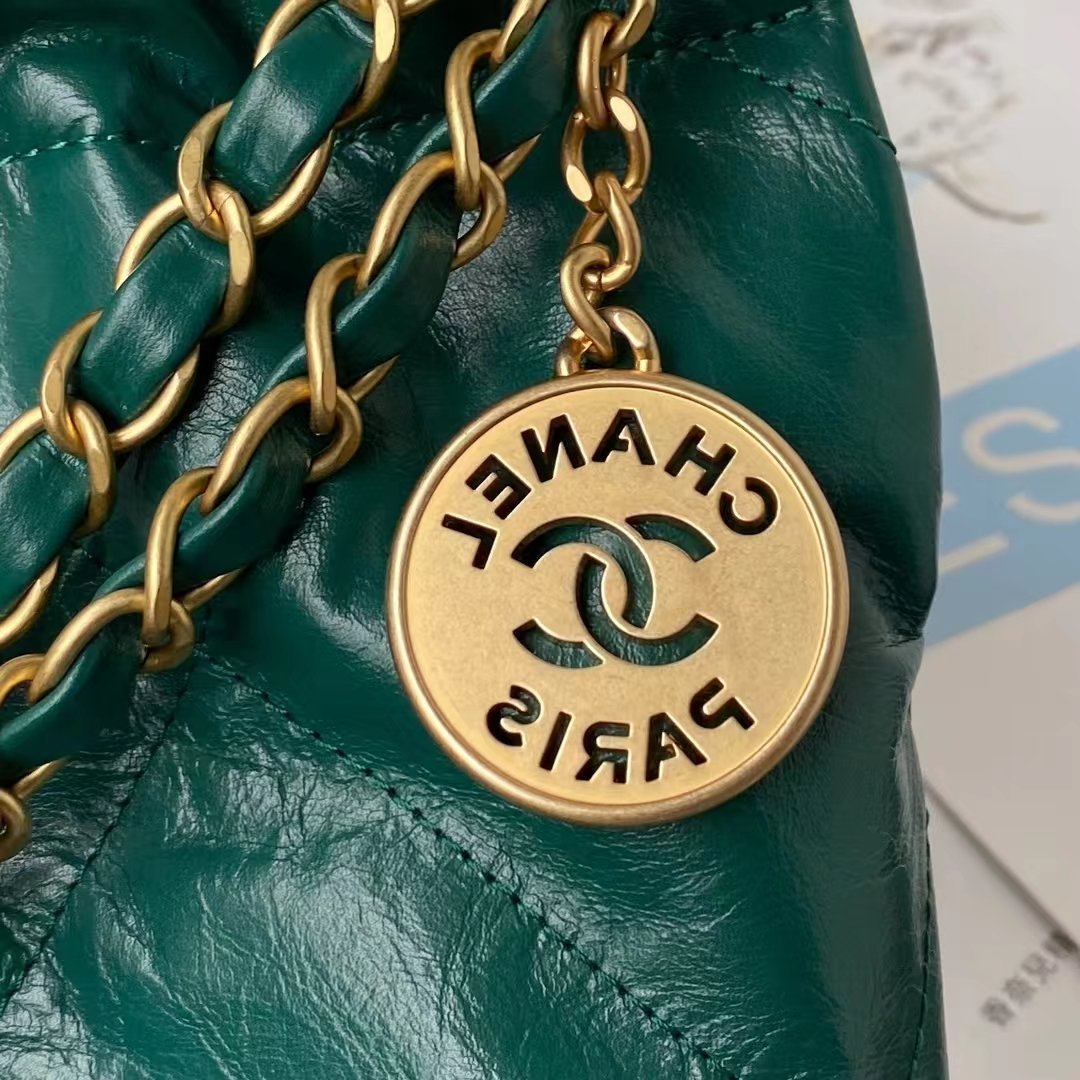 Chanel 22 AS3260 Small Bag Dark Green Calfskin Gold Hardware