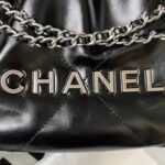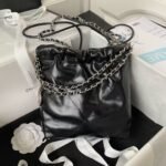 Chanel 22 AS3980 Mini Tote Bag Shiny Calfskin & Silver Metal Black