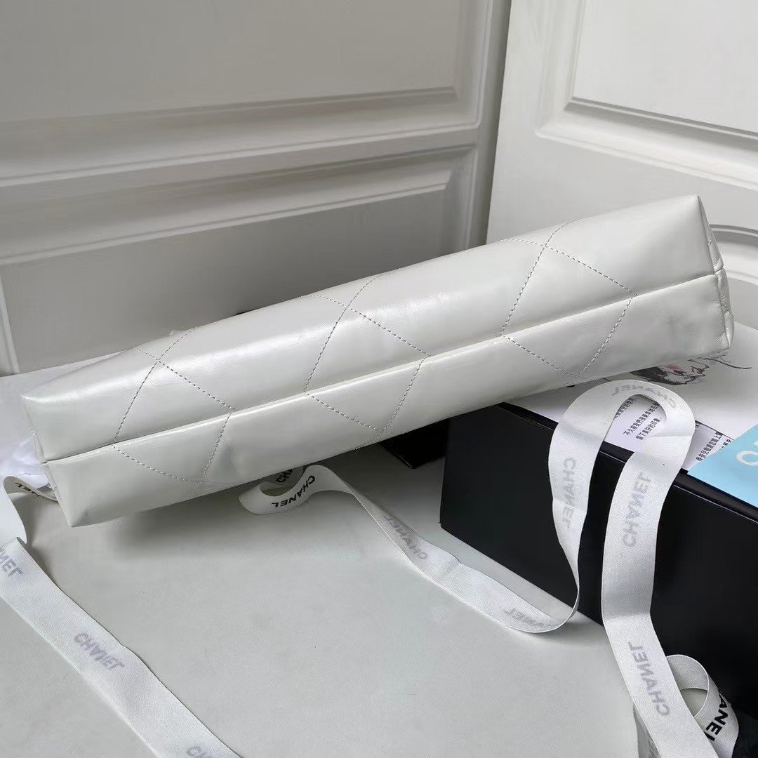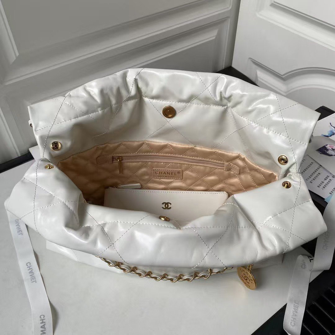 Chanel 22 Hobo Bag 24C AS4486 Gold Metallic White Shiny Calfskin New Edition Horizontal