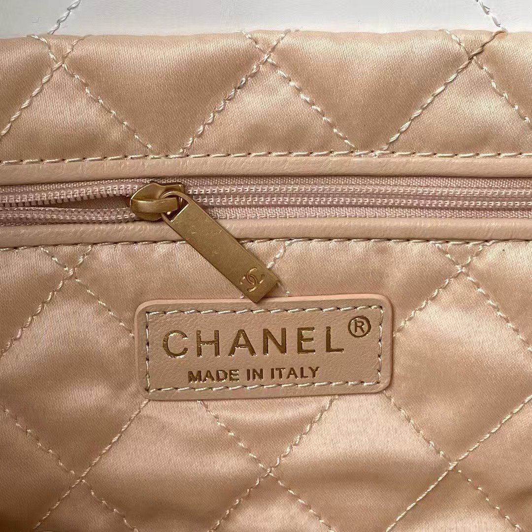 Chanel 22 Hobo Bag 24C AS4486 Gold Metallic Dark Pink Shiny Calfskin New Edition Horizontal