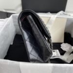 Chanel 23A Classic Medium 2.55 Flap Bag Black Distressed Calfskin Ruthenium Hardware