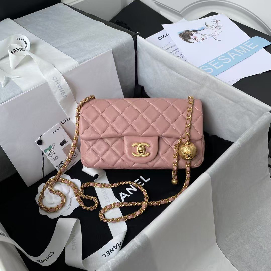 Chanel 23K AS1787 Mini Pearl Embossed Rectangular Flap Bag Lambskin Brushed Metal Hardware Dark Pink