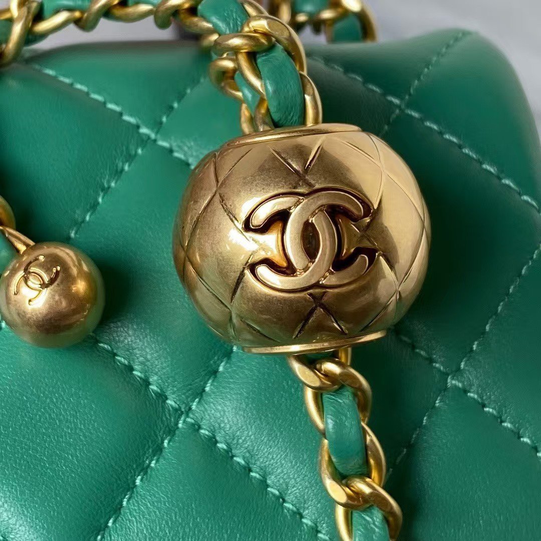 Chanel 23K AS1787 Mini Pearl Embossed Rectangular Flap Bag Lambskin Brushed Metal Hardware Green