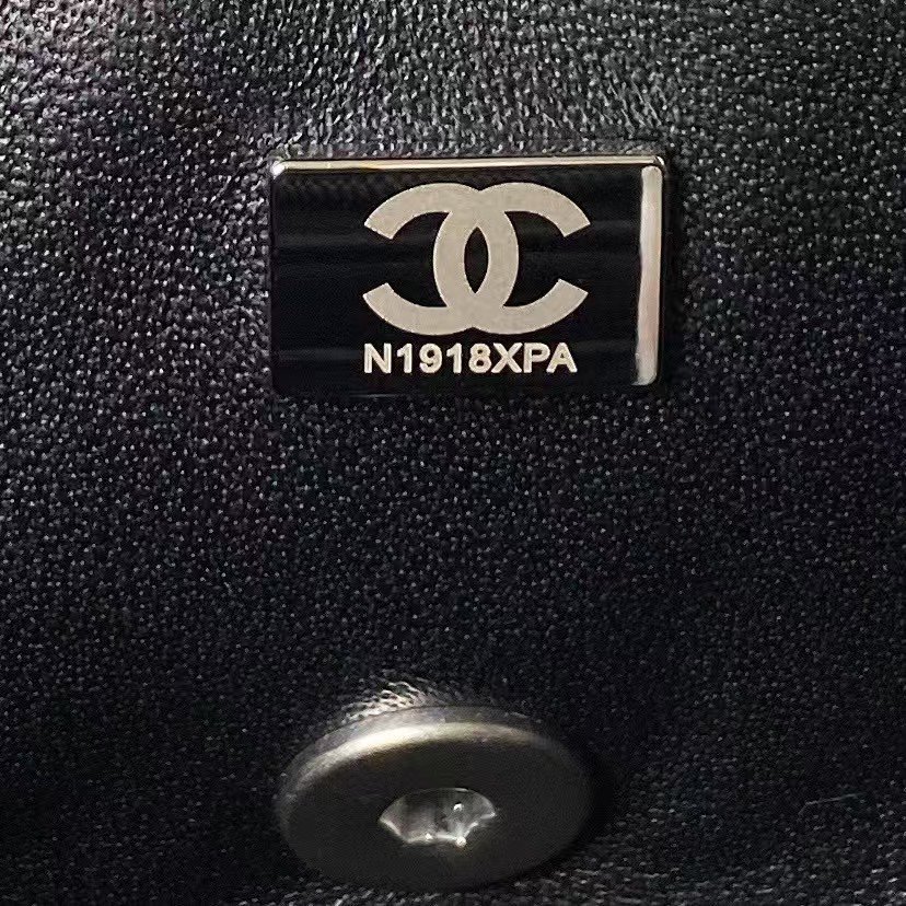 Chanel 23K AS1787 Mini Pearl Embossed Rectangular Flap Bag Lambskin Brushed Silver Metal Hardware Black