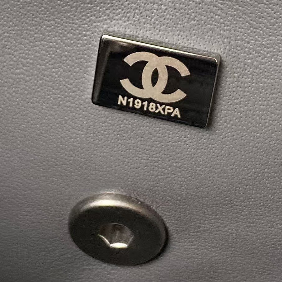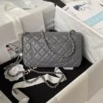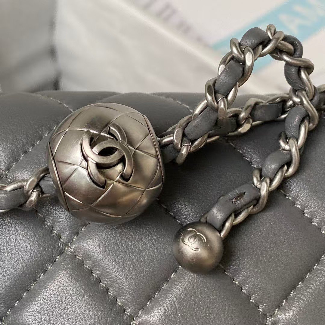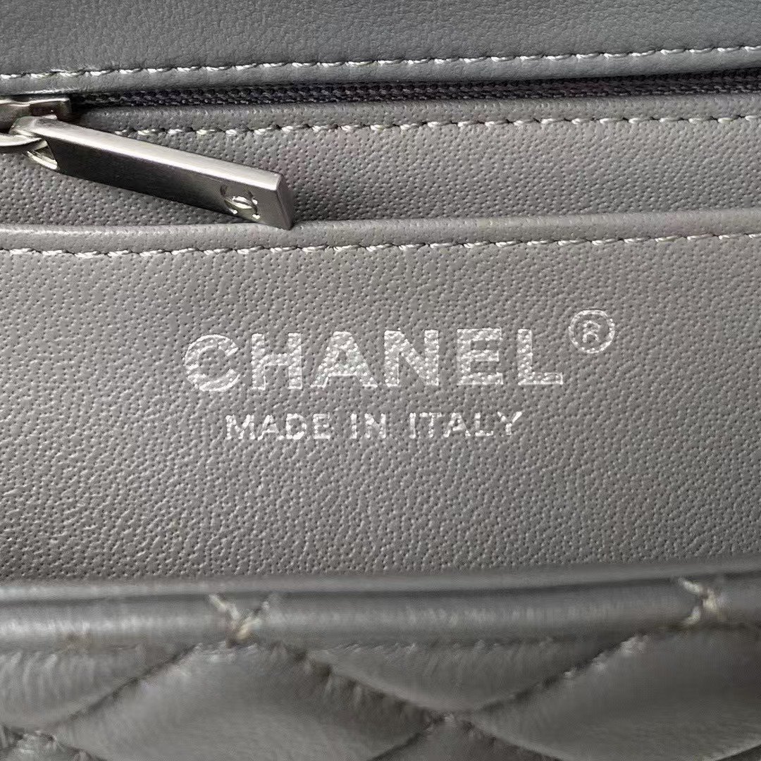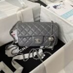 Chanel 23K AS1787 Mini Pearl Embossed Rectangular Flap Bag Lambskin Brushed Silver Metal Hardware Dark Grey