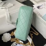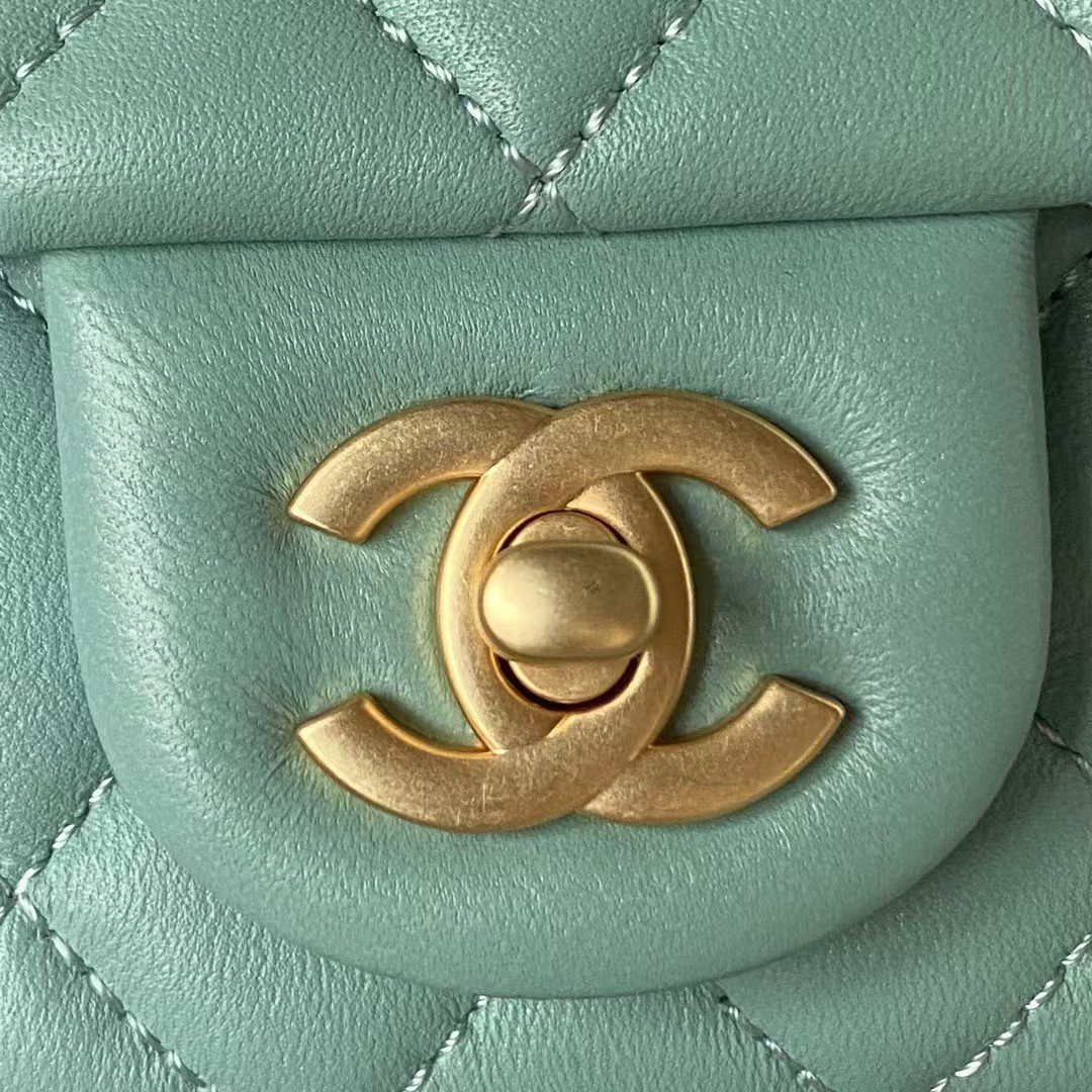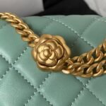 Chanel 23S AS4041 Mini Camellia Embossed Rectangular Flap Bag Antique Gold Hardware Light Green