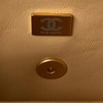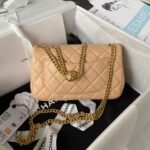 Chanel 23S AS4041 Mini Camellia Embossed Rectangular Flap Bag Antique Gold Metal Hardware Apricot