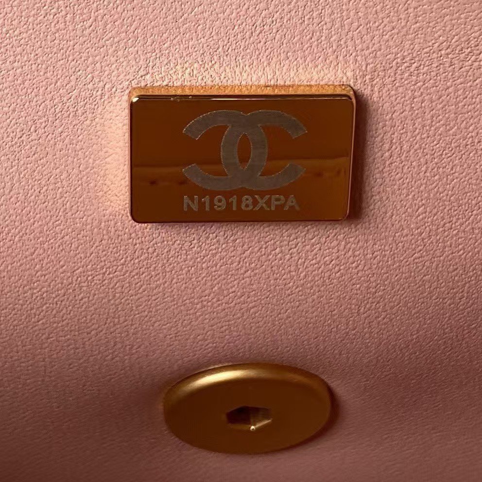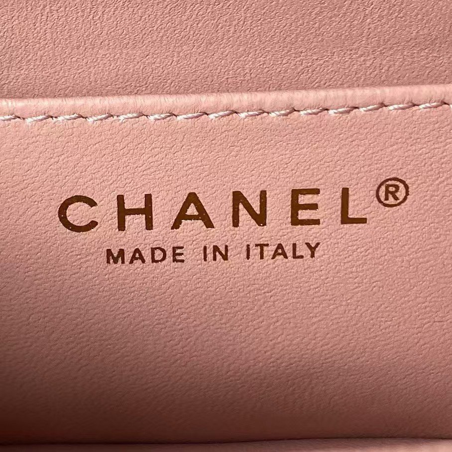 The interior is lined inRose Clair leather and features a small zip pocket with Chanel pull and slip pocket underneath on the rear wall.