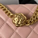 Chanel 23S AS4041 Mini Camellia Embossed Rectangular Flap Bag Antique Gold Metal Hardware Light Pink