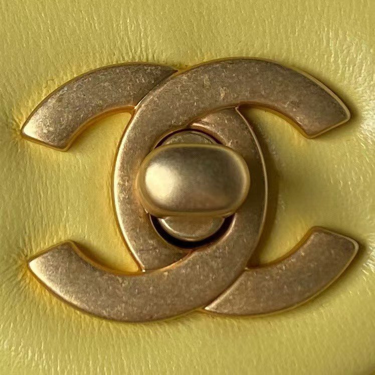 Chanel 23S AS4041 Mini Camellia Embossed Rectangular Flap Bag Antique Gold Metal Hardware Yellow