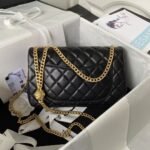 Chanel 23S AS4064 Camellia Embossed Chain Lambskin Flap Bag Black