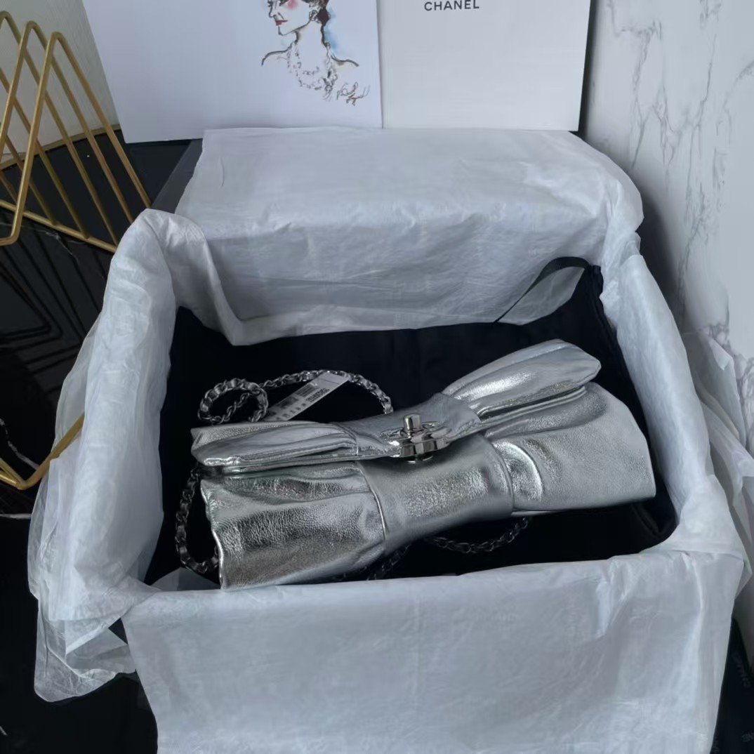 Chanel 24B AS5129 Metallic Lambskin Butterfly Evening Bag Metallic Silver