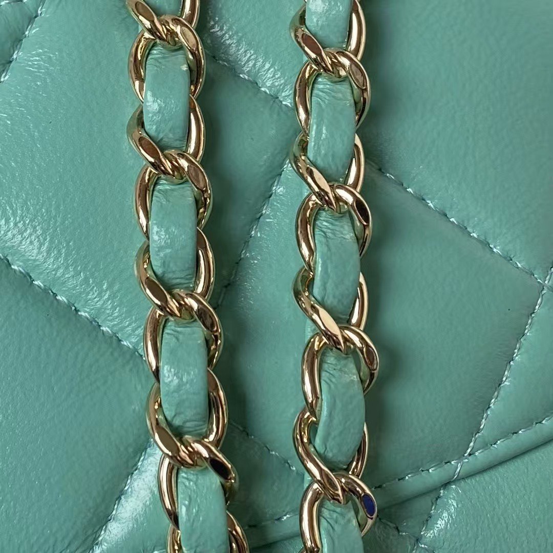 Chanel 24C AS4543 Mini Flap Bag Chain Bag Top Handle Turquoise Lambskin