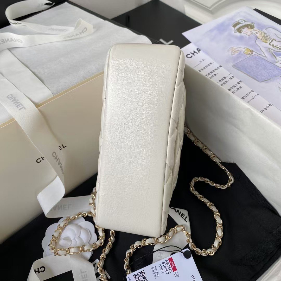 Chanel 24C AS4543 Mini Flap Bag Chain Bag Top Handle White Lambskin