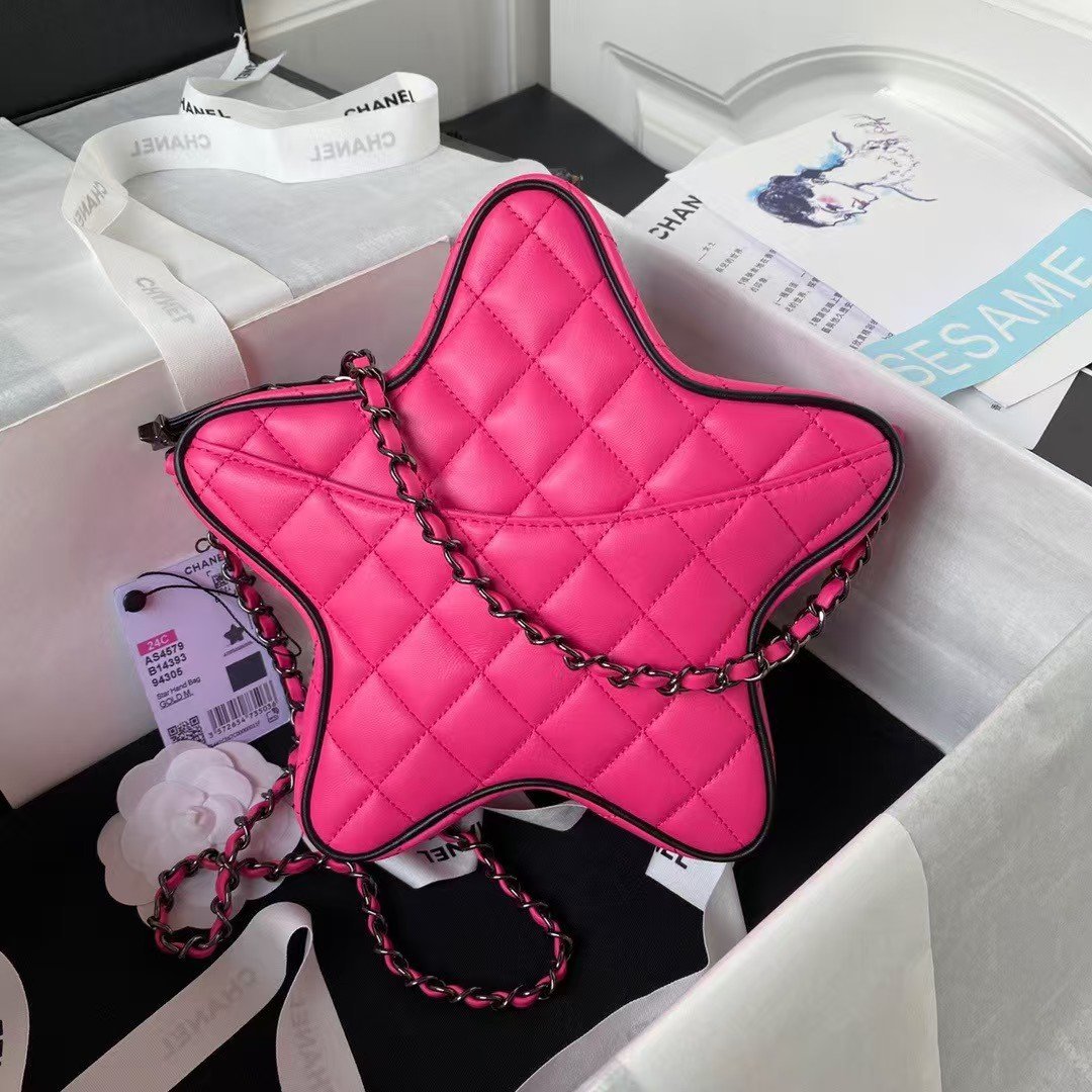 Chanel 24C AS4579 Star Bag Fuchsia Satin Gold Metal Hardware