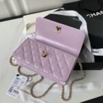 Chanel 24P AP3803 Shiny Crinkled Lambskin Chain Clutch Pearl Handle Purple