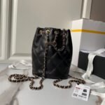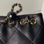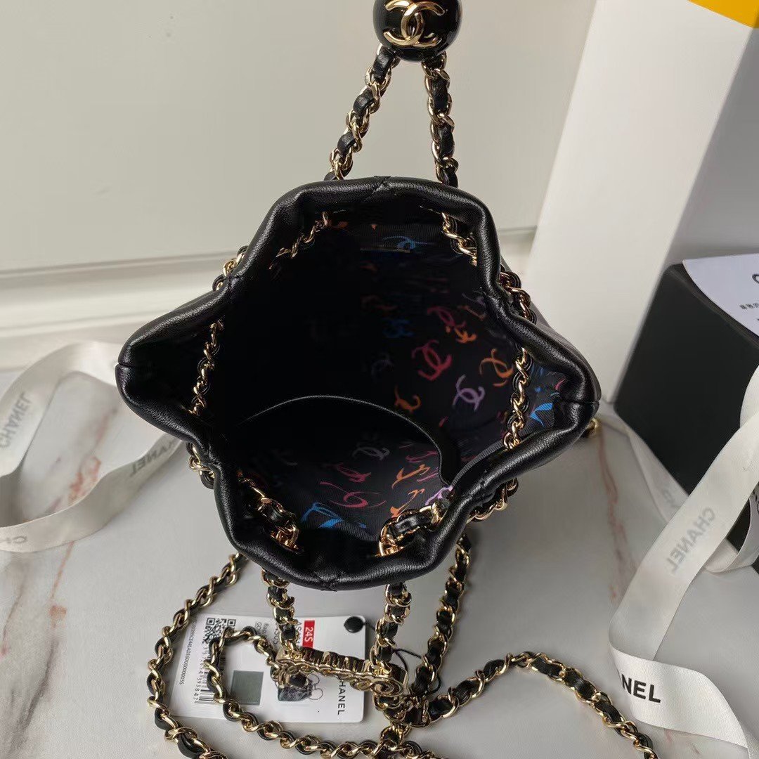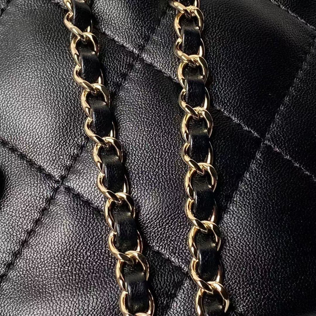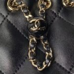 Chanel 24S AS4810 Medium CC Drawstring Backpack Shiny Lambskin Light Gold Hardware Black