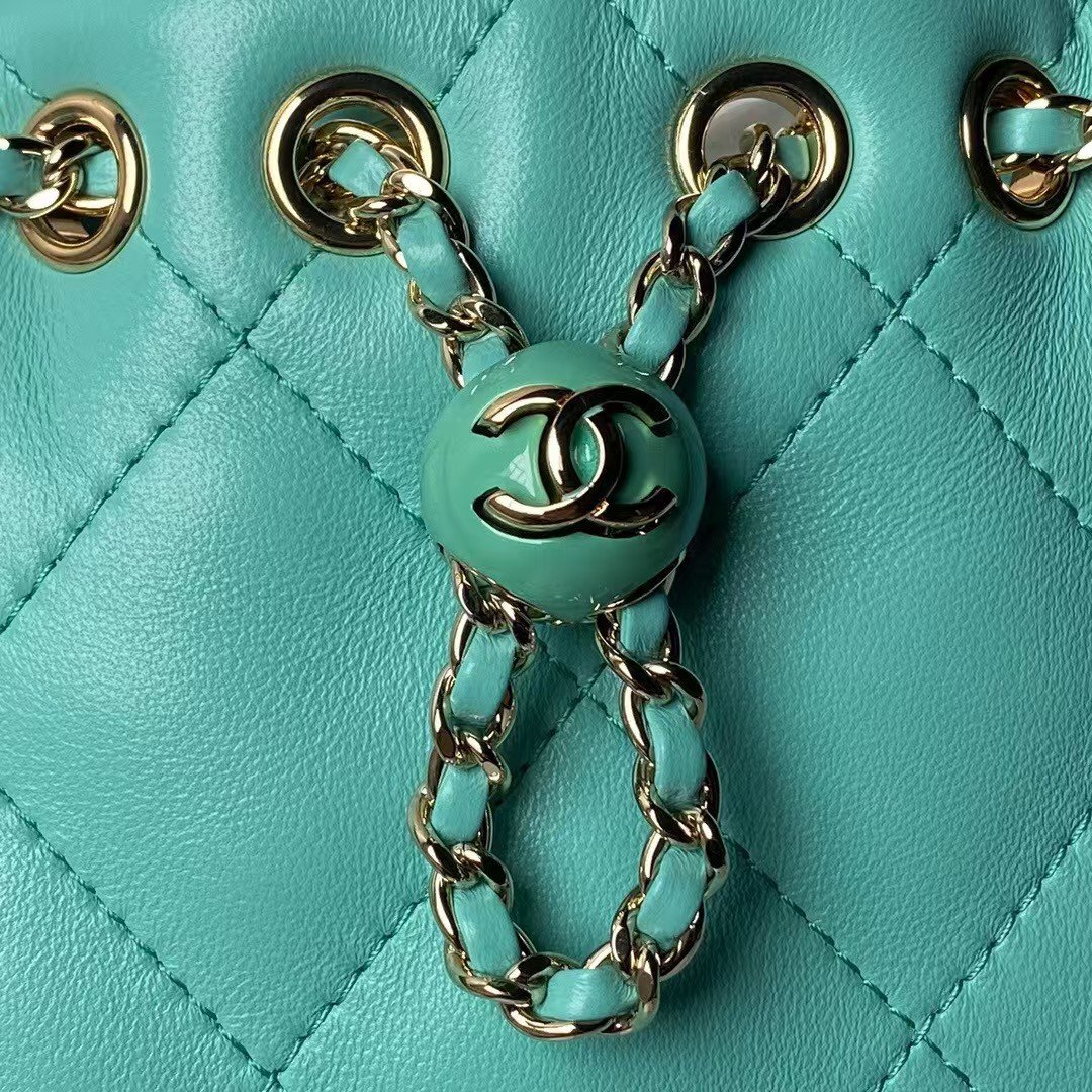 Chanel 24S AS4810 Medium CC Drawstring Backpack Shiny Lambskin Light Gold Hardware Green