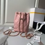 Chanel 24S AS4810 Medium CC Drawstring Backpack Shiny Lambskin Light Gold Hardware Pink