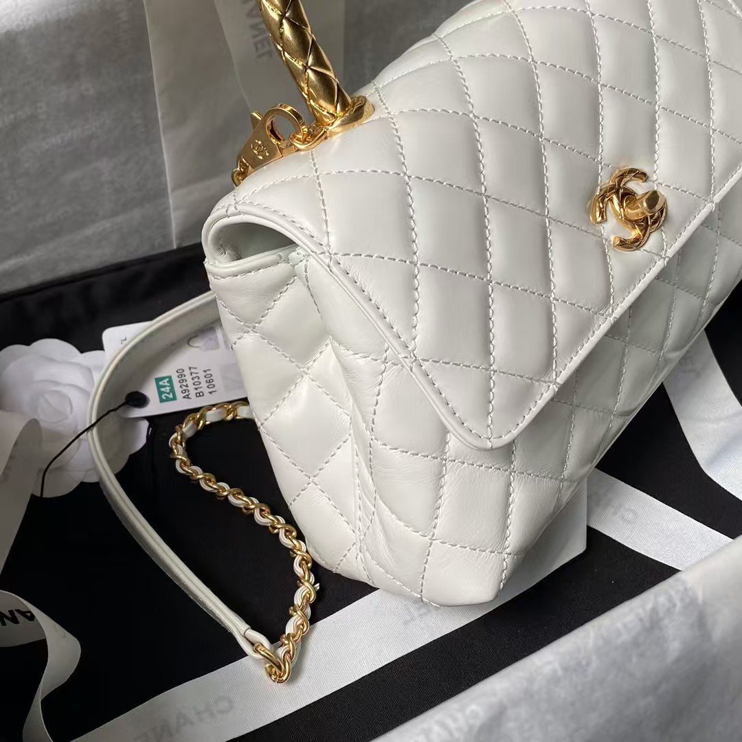 Chanel A92990 Small Flap Bag With Top Handle White Shiny Calfskin White