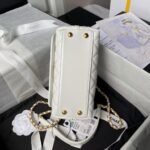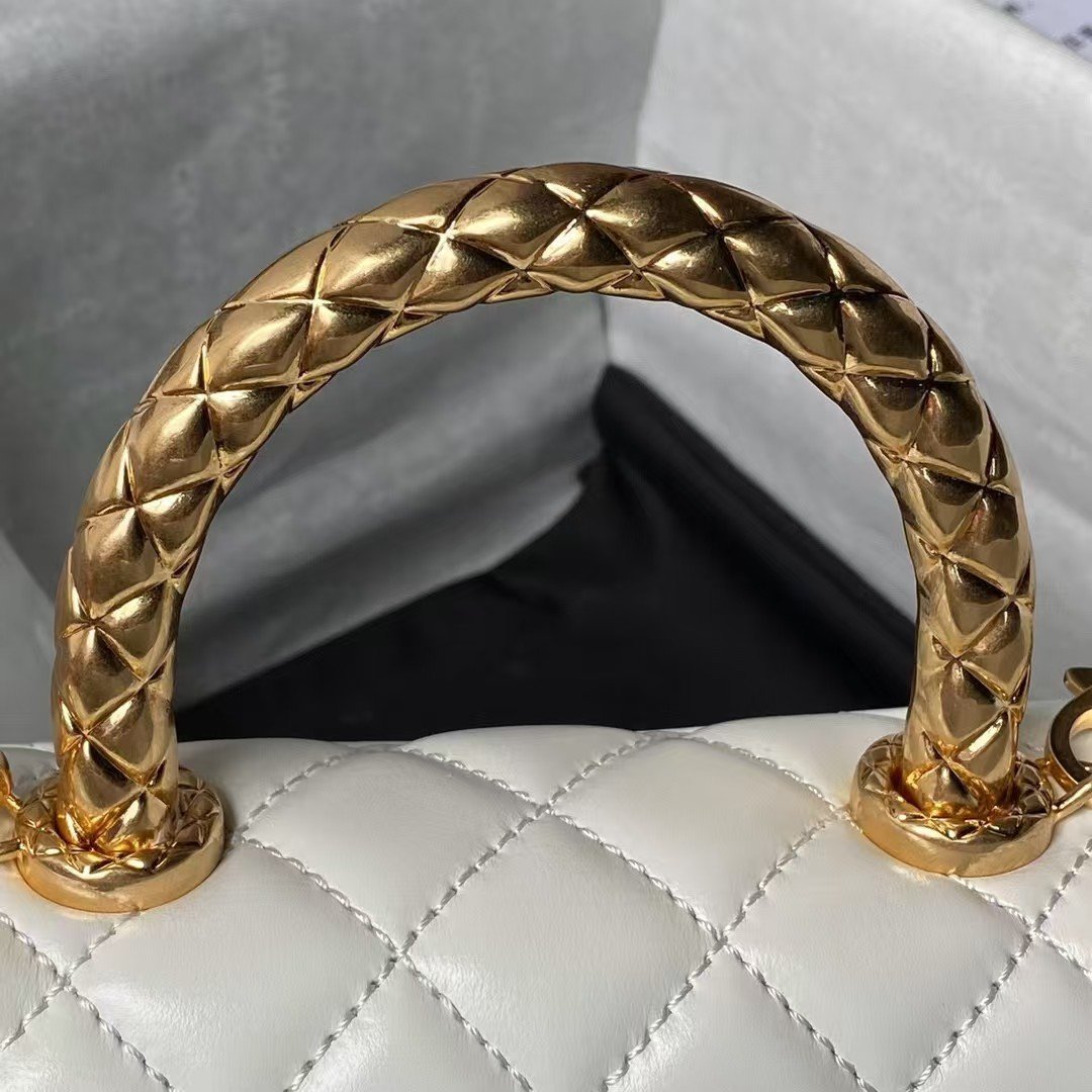 Chanel AS2215 Mini Flap Bag With Metal Top Handle Shiny Calfskin White