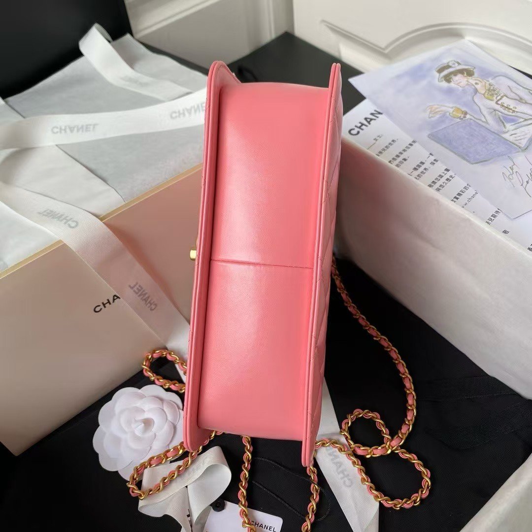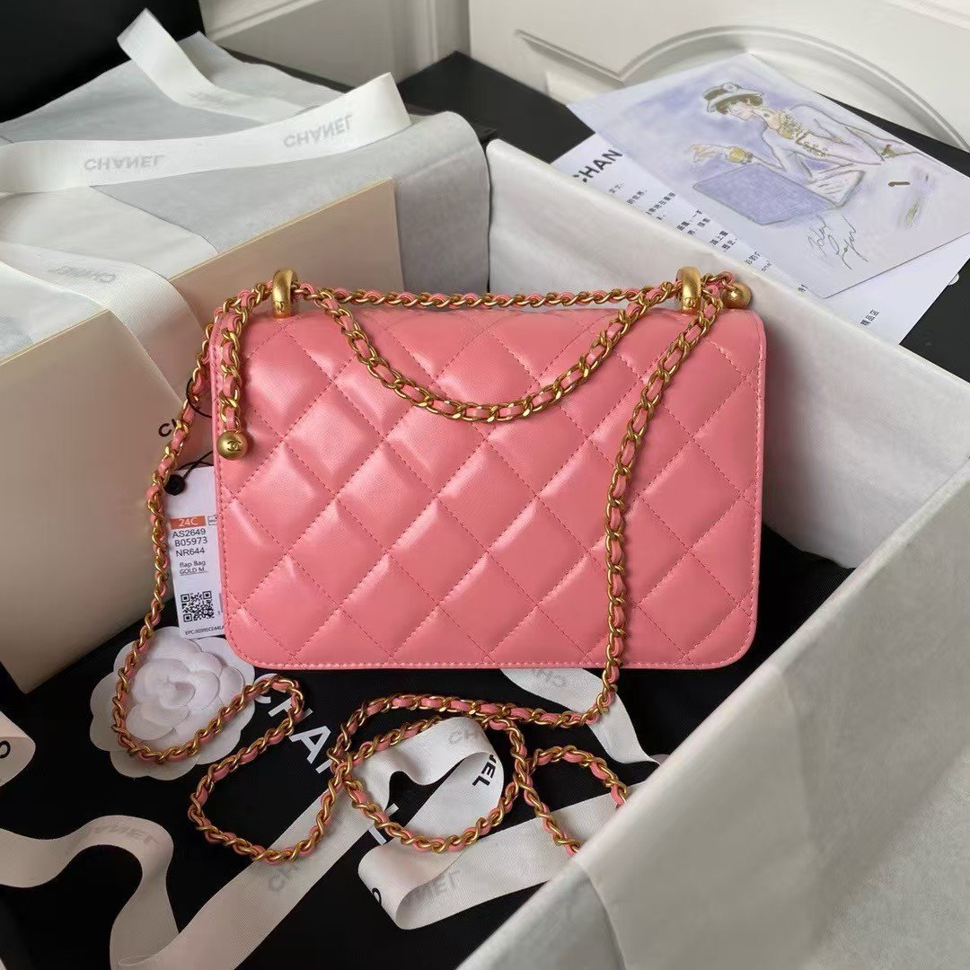 Chanel AS2649 Chain Bag Gold Charm Small Vintage Calfskin Bag Dark Pink