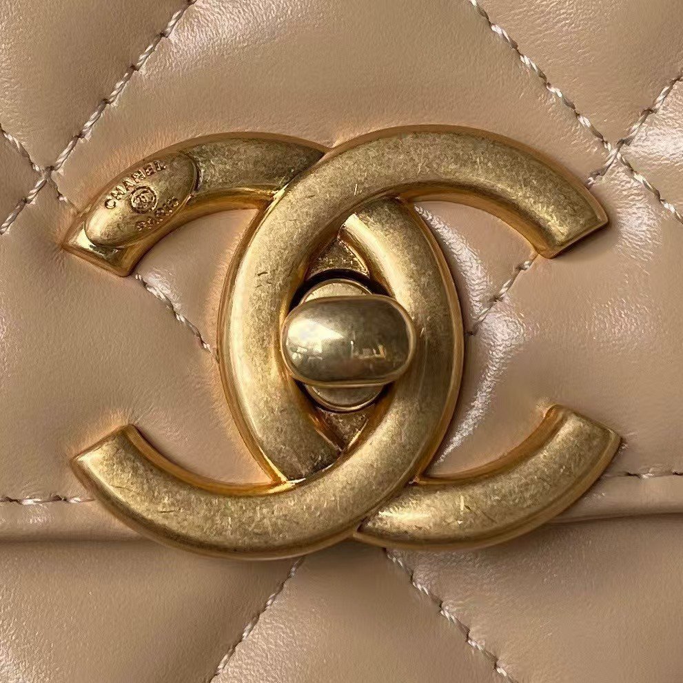 Chanel AS2649 Chain Bag With Gold Charm Small Vintage Calfskin Bag Beige