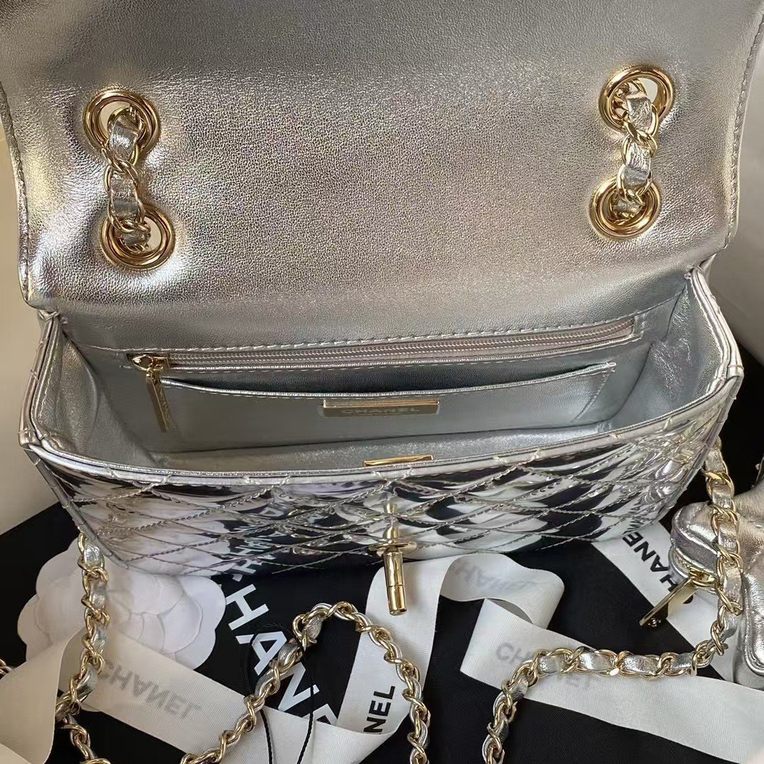 Chanel AS4647 Mini Flap Bag With Star Coin Purse Metallic Calfskin & Gold Metallic Silver