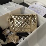 Chanel AS4648 Flap Bag Star Coin Purse Mirrored Calfskin Metallic Calfskin & Gold Metallic Gold