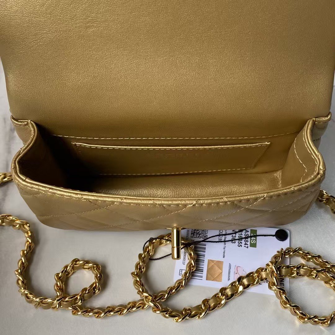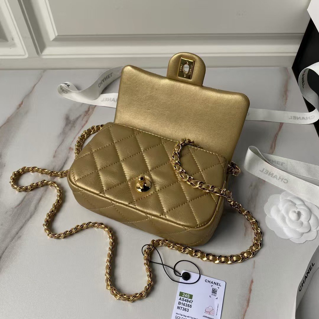 Chanel AS4847 Mini Flap Bag With Top Handle Lambskin Resin Gold