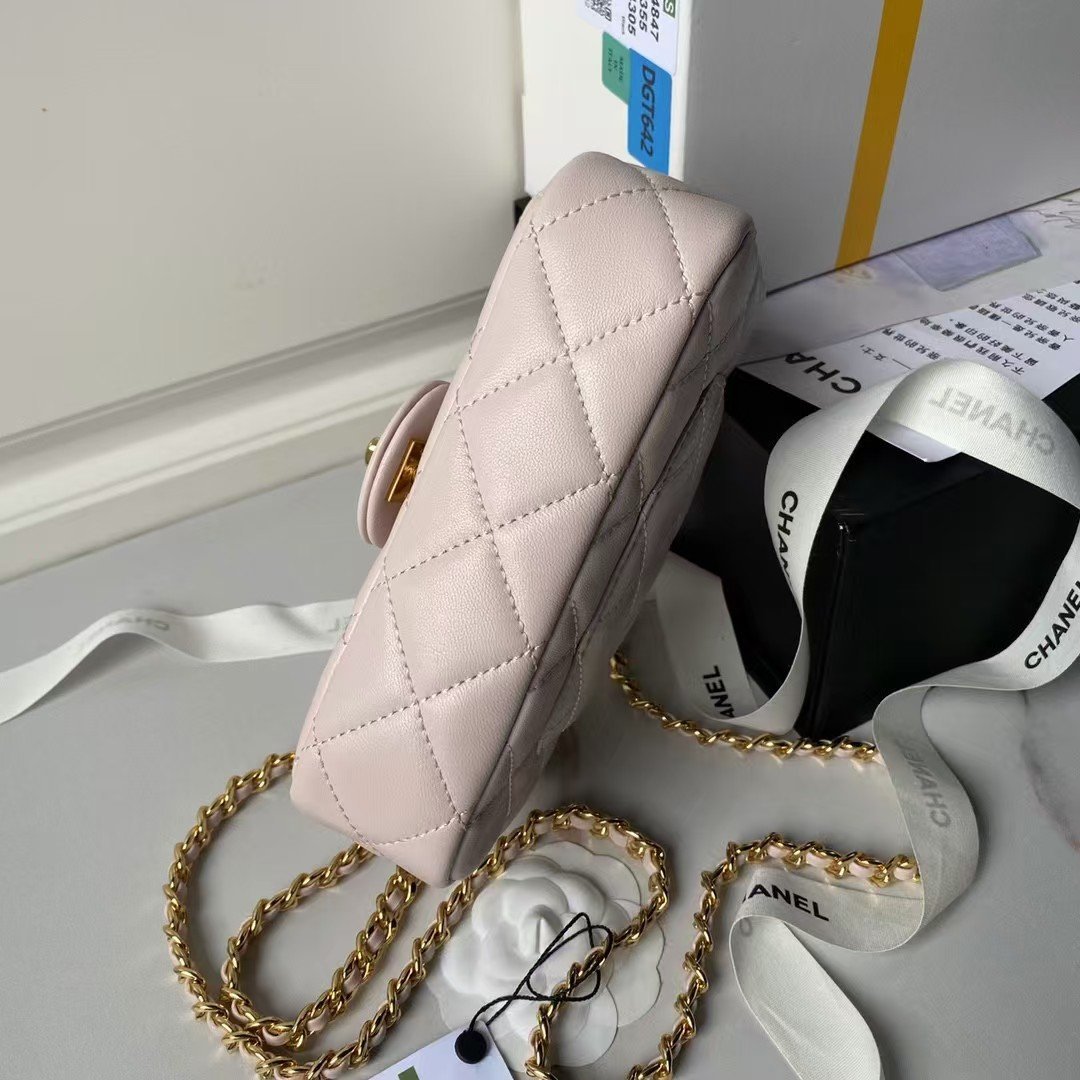 Chanel AS4847 Mini Flap Bag With Top Handle Lambskin Resin Gold