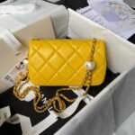 Chanel AS4861 Small Flap Bag Pearl Lambskin Faux Pearl & Gold Metal Yellow