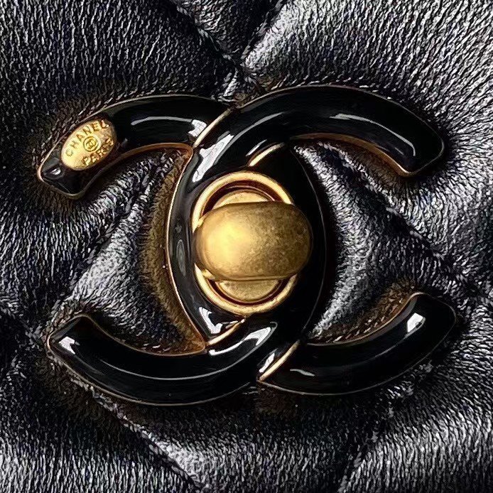 Chanel AS4973 Mini Flap Bag Shiny Lambskin Enamel & Gold Metal Black