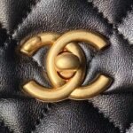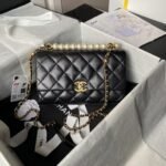 Chanel AS4997 Flap Bag with top Handle Shiny Lambskin Imitation Pearls & Gold-Tone Metal Black