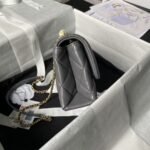 Chanel AS5001 Mini Flap Bag Top Handle Shiny Lambskin Imitation Pearl & Gold Metallic Grey