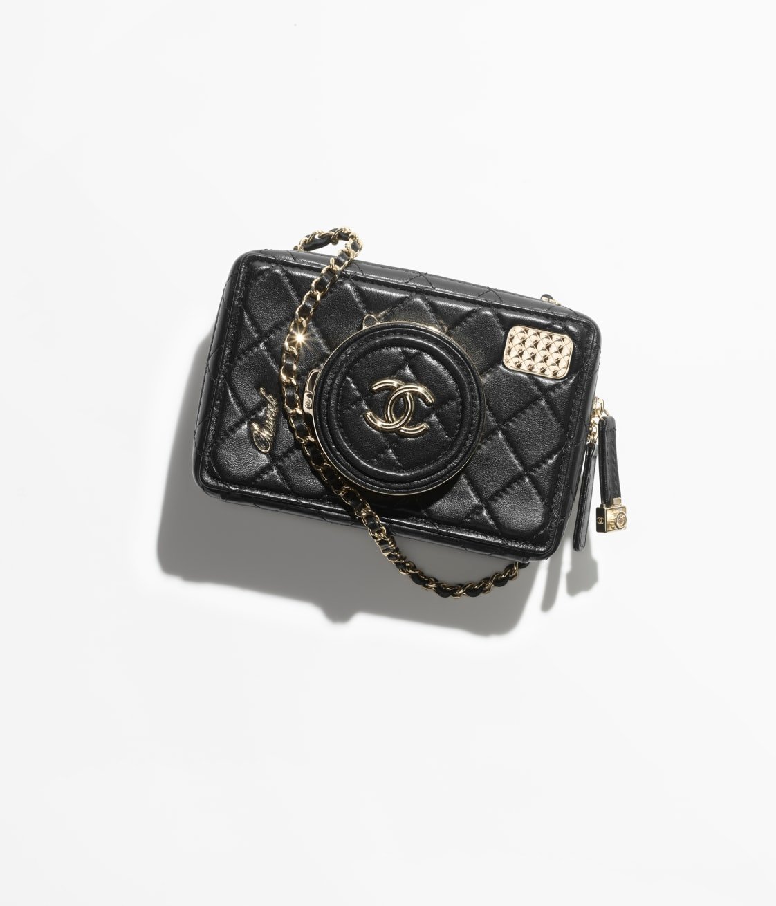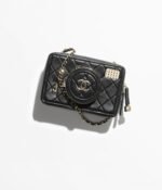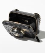 The new camera bag uses diamond quilted sheepskin to create a cute and playful camera shape. The “lens cover” is embellished with the classic double C logo. When opened, it is an exquisite and practical makeup mirror. There are 4 colors to choose from:black, white, dark beige and burgundy, and it comes with a signature leather chain shoulder strap.