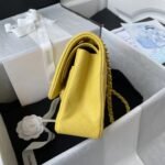 This medium classic double flap bag is crafted in yellow caviar leather with light gold hardware, featuring the signature CC turnlock closure on the front flap, half-moon back pocket, adjustable interwoven light gold chain and yellow leather shoulder strap.