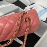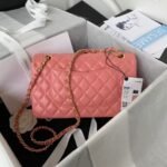 This medium classic double flap bag is crafted in dark pink lambskin with light gold hardware, front flap with signature CC turnlock closure, half-moon back pocket, adjustable light gold interwoven chain and dark pink leather shoulder strap.