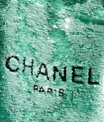 This shopping bag is made of green sequins, ribbed satin and leather with black hardware, tonal stitching, a removable interior pocket, interwoven black metal chain links and a green leather shoulder strap.