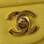 This small Classic Double Flap Bag in yellow caviar leather with light gold hardware features a front flap with signature CC turnlock closure, half-moon back pocket, adjustable interwoven light gold chain and yellow leather shoulder strap.