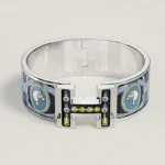 Wide enamel bracelet with ‘Saddle Bouquet’ motif.