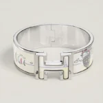 Wide bracelet in enamel with the Herm??s Flagship motif.