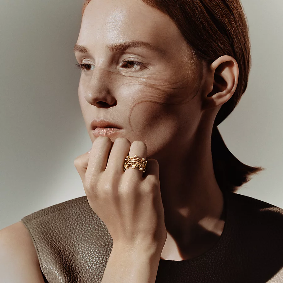 In 1837, within the walls of his workshop at 56 rue Basse-du-Rempart, Thierry Herm??s crafted a collection of breathtaking harnesses, each one a true masterpiece intended for the Maison’s first clientele: horses. Fast forward to 1927 and it was no surprise that Herm??s drew inspiration from the equestrian realm to bring its first piece of jewelry to life, the coveted Filet de Selle bracelet. With a nod to the world of horse riding, the shapes of galloping horse heads, harnesses, bits, and dog collars gracefully emerge, their forms and contours paying homage to the Maison’s roots.