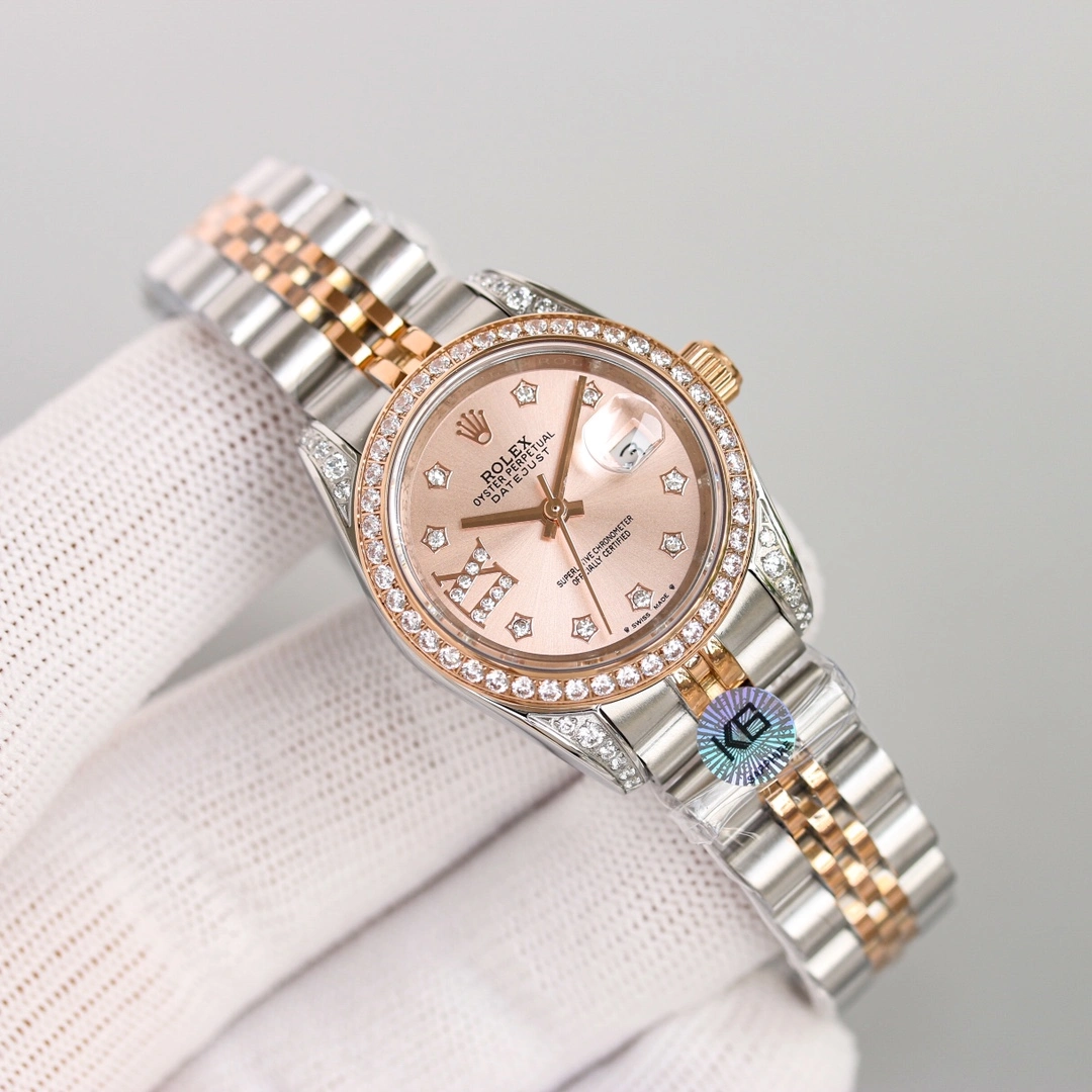 The Oyster case is matched with a diamond-encrusted bezel, and the sides of the case and lugs reflect an elegant luster, making the outline of the 28 mm Oyster case more prominent and more attractive. As a Rolex classic ladies’ watch, the ladies’ timepiece is the continuation and sublimation of the brand’s classic timepiece, and has always been synonymous with elegant style and precise timepieces.
